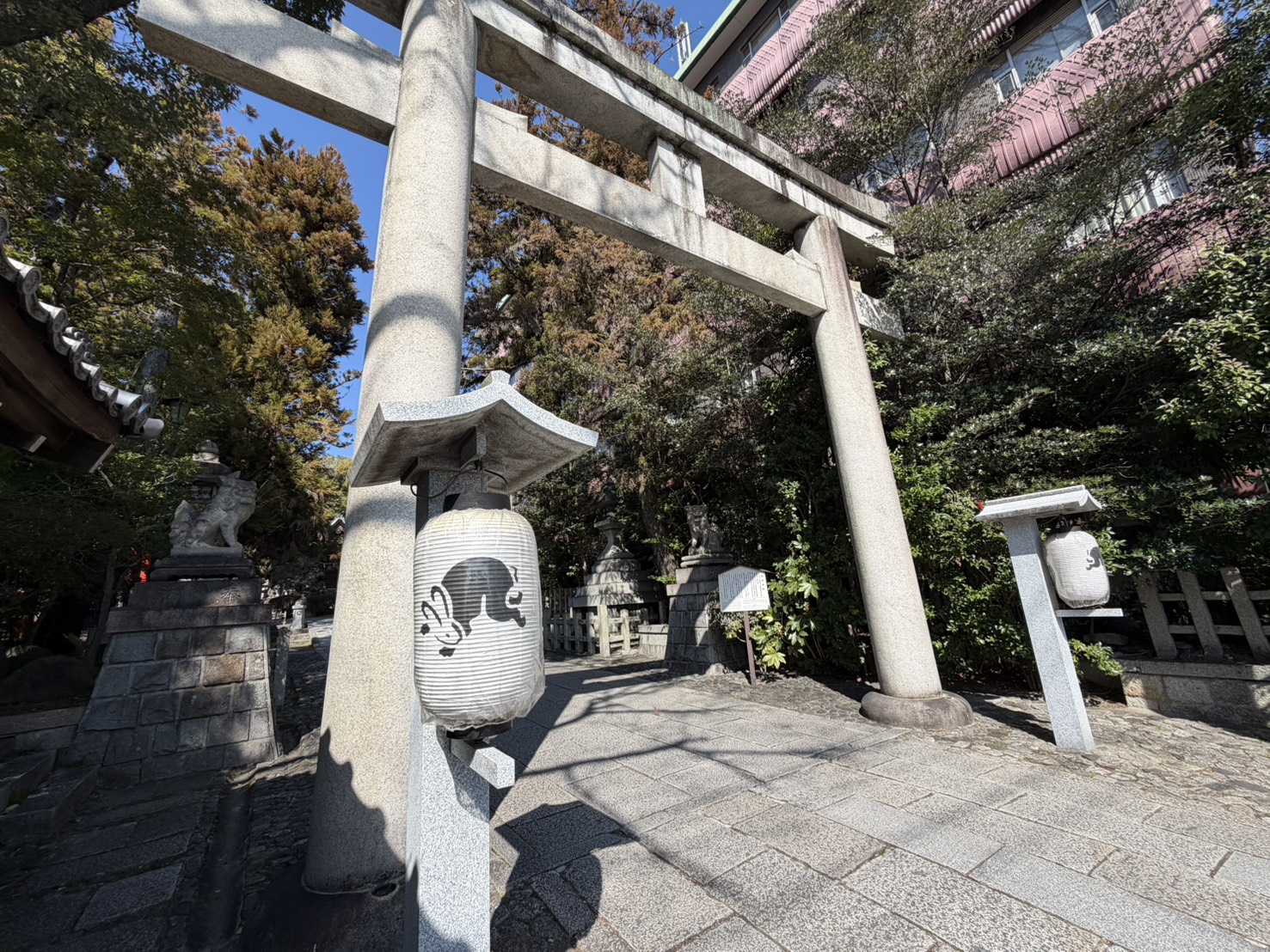 狛うさぎは全部で三対、合わせて六体いるよ。