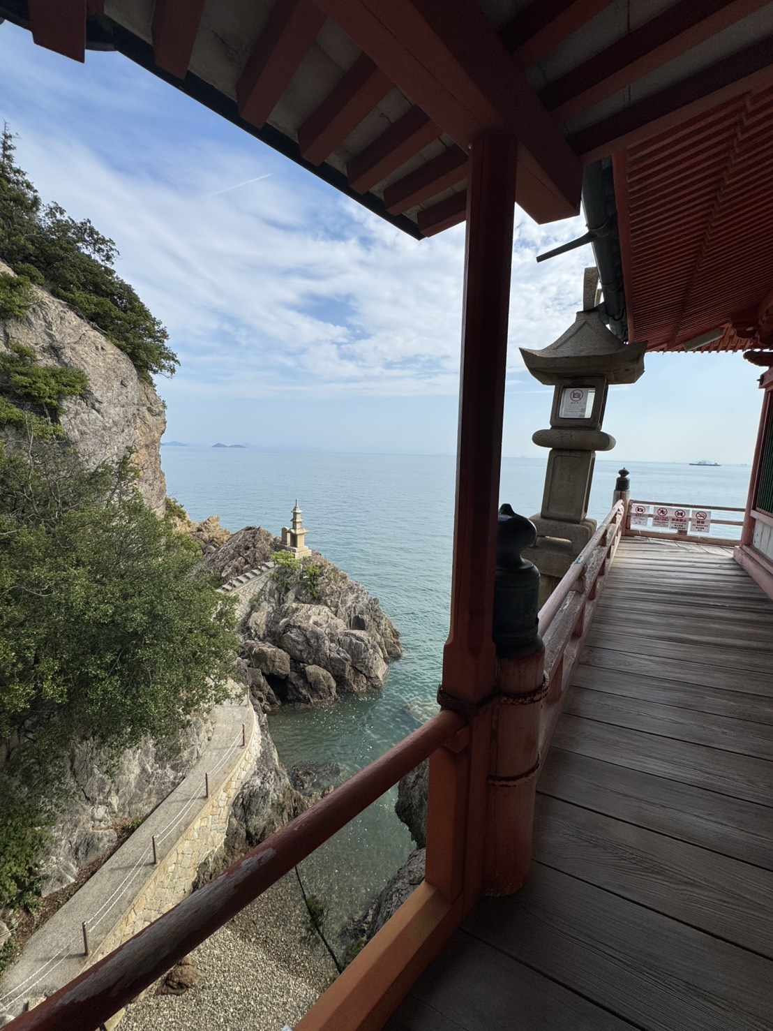 お堂自体が海に突き出しているから視界を遮るものが何もない。海風と波音が心地いい…