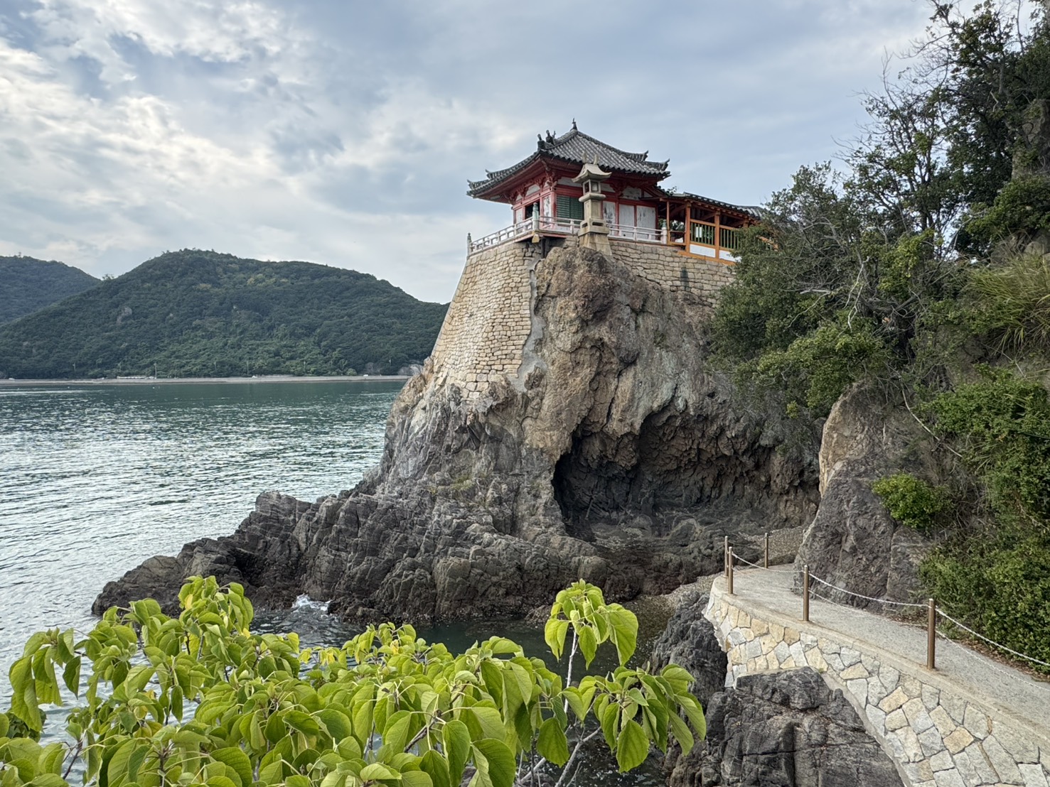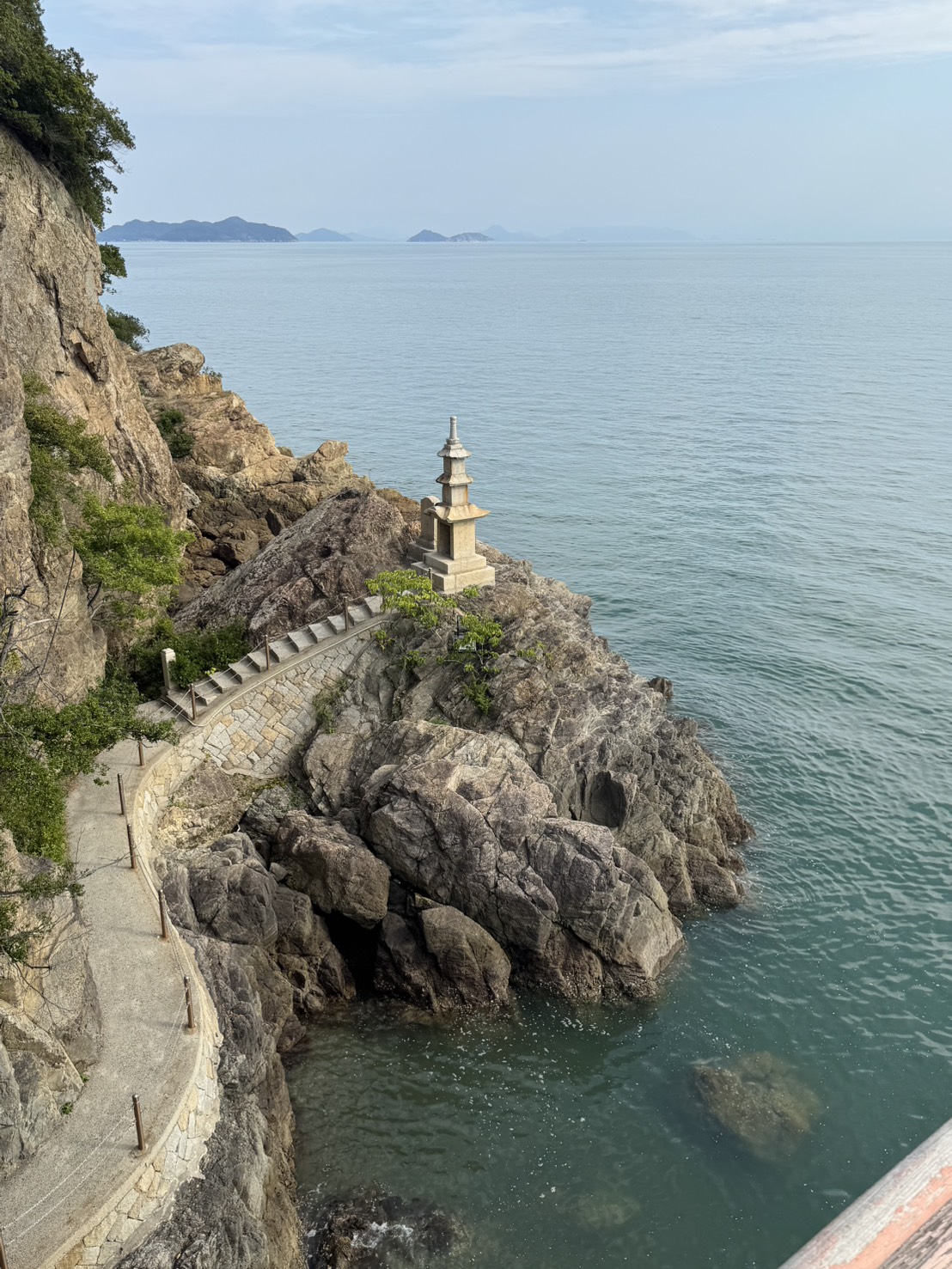 お寺の場所は徒歩でしかたどり着けない海の崖っぷちだから、今回はスリル溢れる子授け祈願になりそう。ワイルドだにゃ🐾